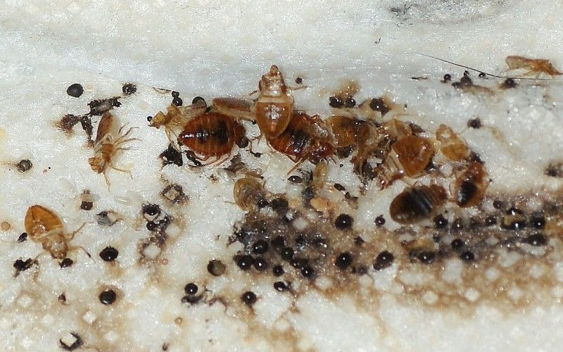 Клопы скапливаются в наиболее безопасных для себя местах и там же размножаются, живут и справляют нужду. Такие места легко увидеть на светлой деревянной мебели или светлой обивке — это множественные черные точки (циста), разбавленные наличием яиц клопов и шкурками, которые они сбрасывают по мере своего взросления во время линьки.